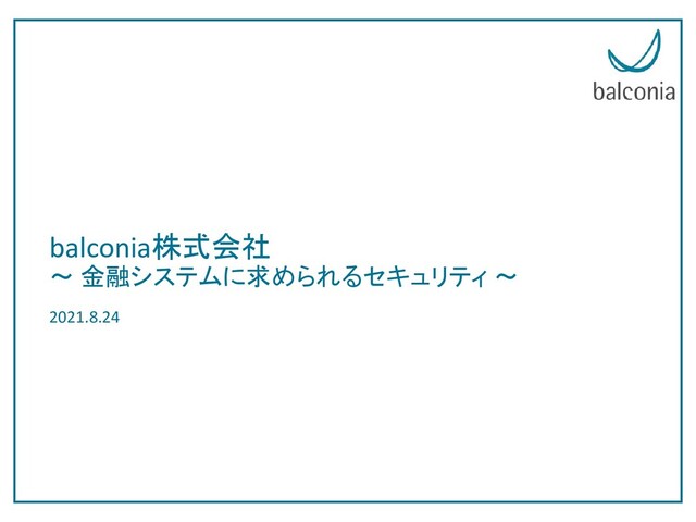 balconia株式会社 〜 金融システムに求められるセキュリティ 〜 2021.8.24