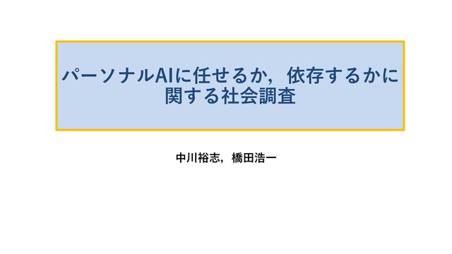 複雑化するインターネット環境に個々人が適切に対応する方法として個人の代理を行うパーソナルAIの導入が期待される.パーソナルAIは本人が了承した過去の商品購入や契約などをデータベースとして記憶している.このようなパーソナルAIを本人の代理として利用するかどうか,または利用によってパーソナルAIに頼り切りになるか,などについて一般人がどのように考えているかを知ることは,今後,パーソナルAIを社会に導入していくにあたっての指針を与えてくれる.この報告では,この問題に対する具体的答えとして,一般人1083人を対象にしたアンケート調査を行い,得られたデータを統計的に分析した結果について報告する.