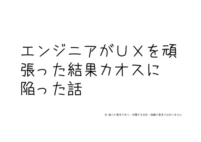 エンジニアがUXを頑 張った結果カオスに 陥った話 ※ 個人の意見であり、所属する会社・組織の意見ではありません