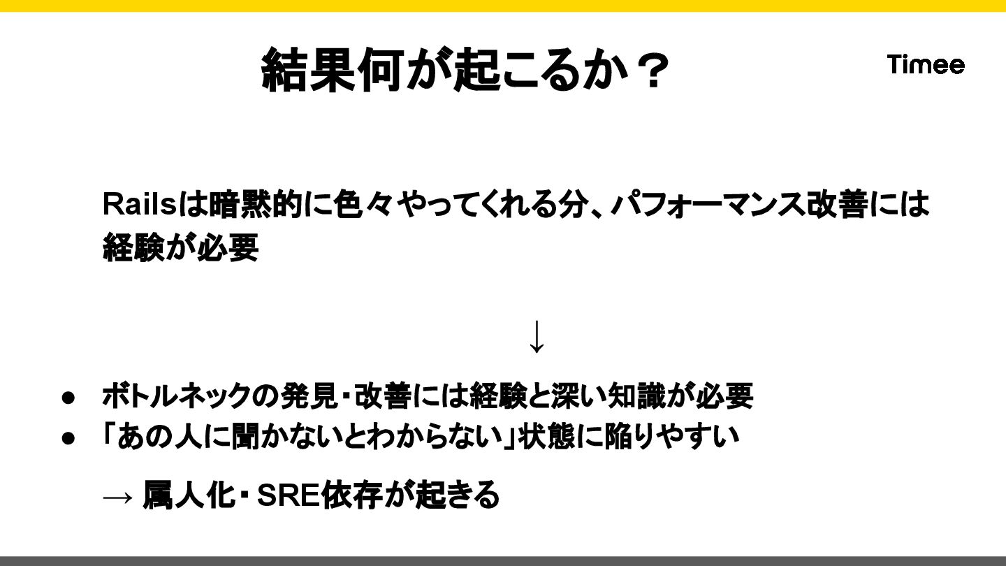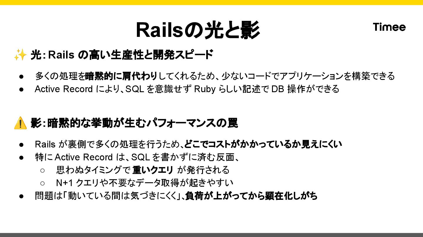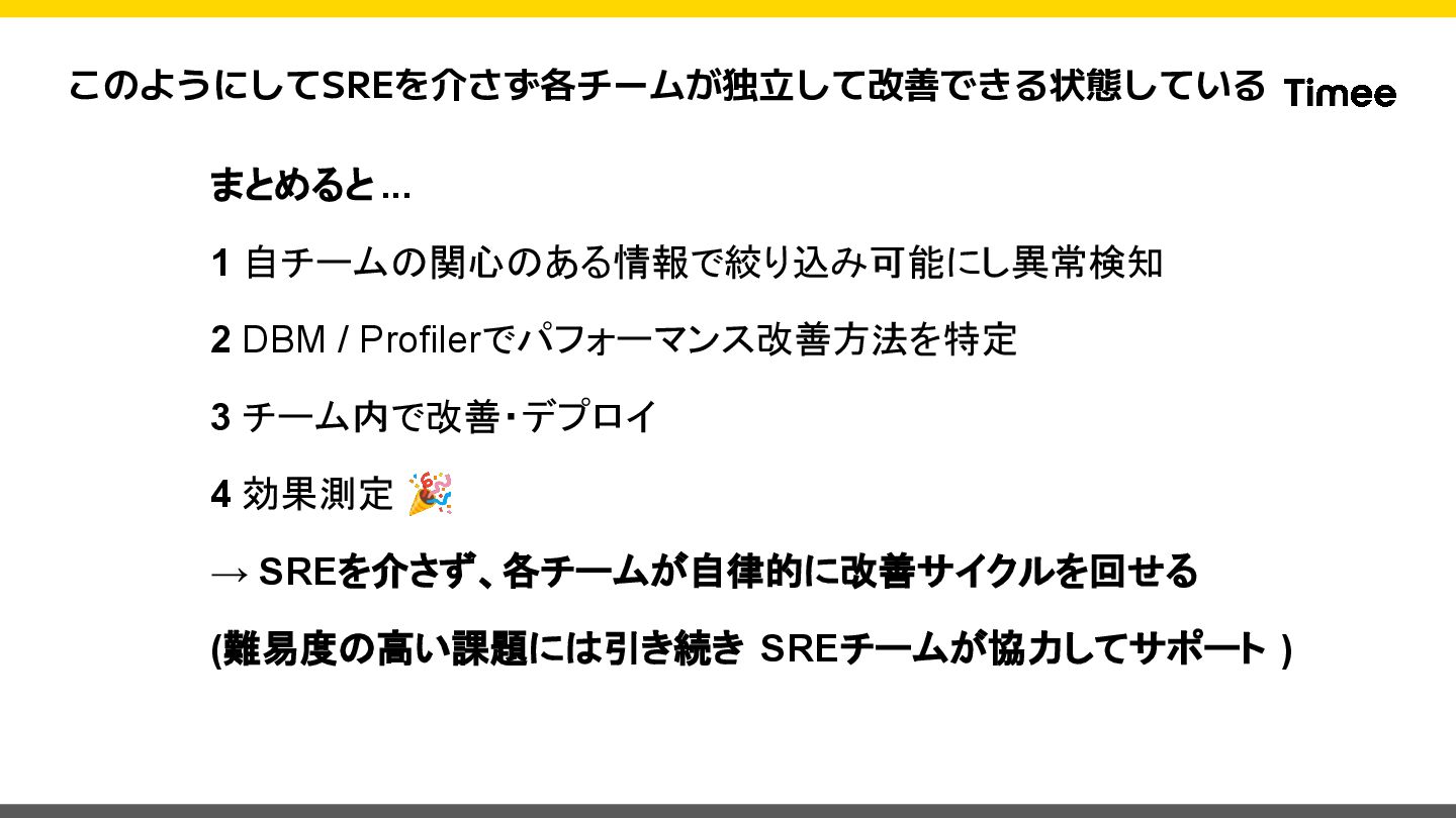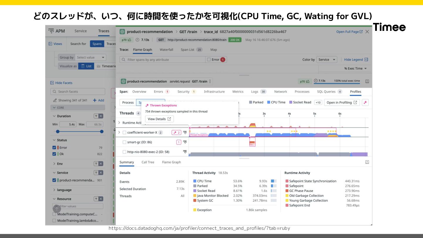 private def set_datadog_tags span = Datadog::Tracing.active_span return unless span code_owner = CodeOwnership.for_class(self.class)&.name || 'unknown' span.set_tag('code_owner', code_owner) rescue StandardError => e Rails.logger.warn("Failed to set code_owner tag: #{e.message}") end end このModuleをControllerで includeするだけ! ※ Sidekiq等の実装は下記ブロ グをご参照ください https://tech.timee.co.jp/entry/2 024/12/14/100000