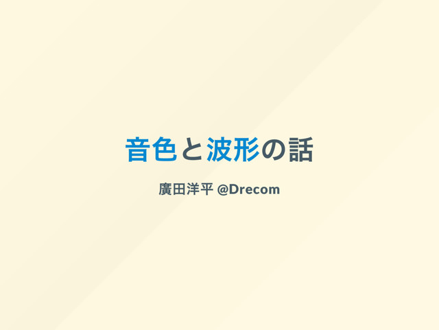 Web Audio APIで波形を扱いながら音色を変化させていきます。 音の波形だけでなく、音量の時間変化も変化させて音色を作っていきます。 WebAudio.tokyo #2で発表した内容です。 (LTの半分くらいDEMOに当てたからスライドの薄っぺらさが半端ない…)