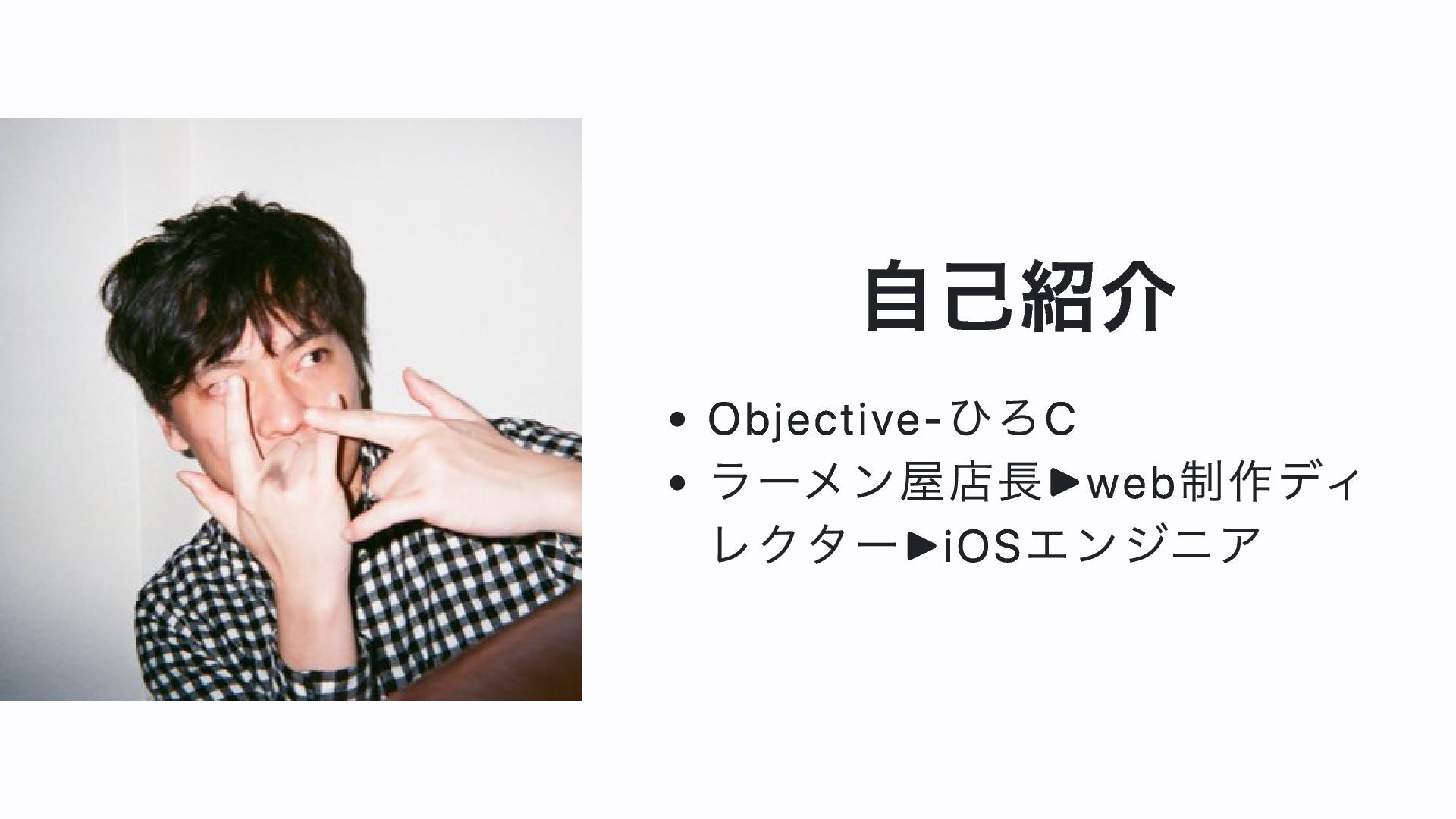 自己紹介 Objective-ひろC ラーメン屋店長▶︎web制作ディ レクター▶︎iOSエンジニア