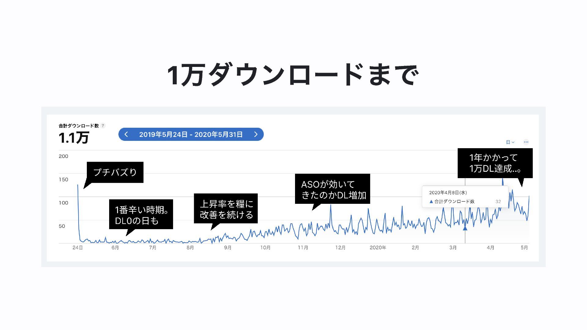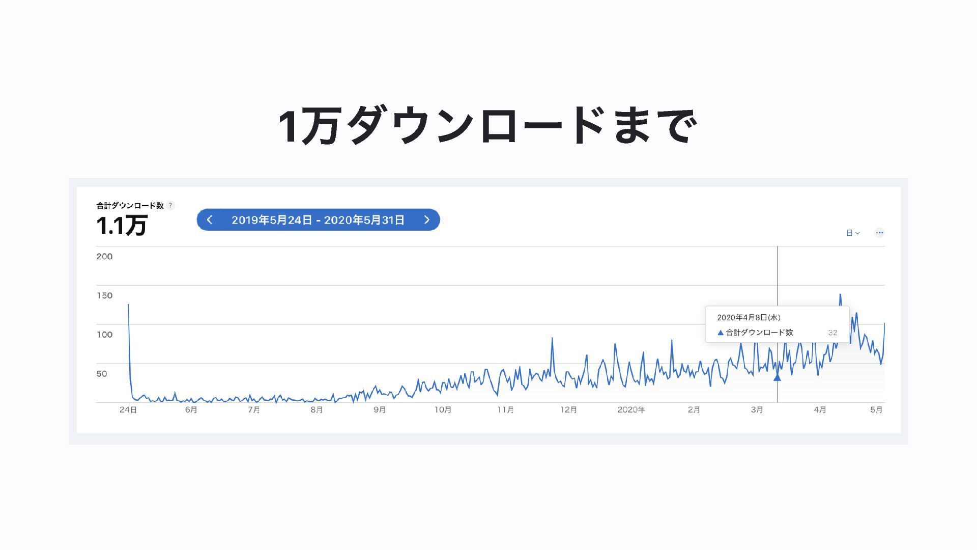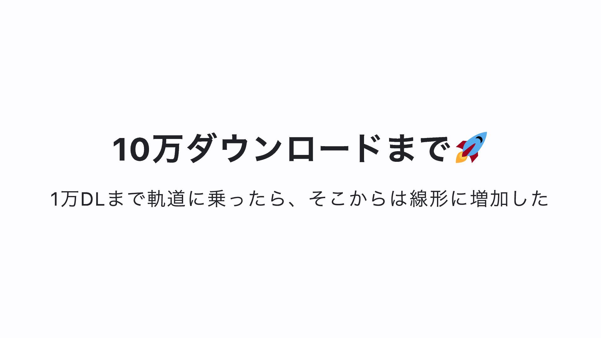 10万ダウンロードまで 1万DLまで軌道に乗ったら、そこからは線形に増加した