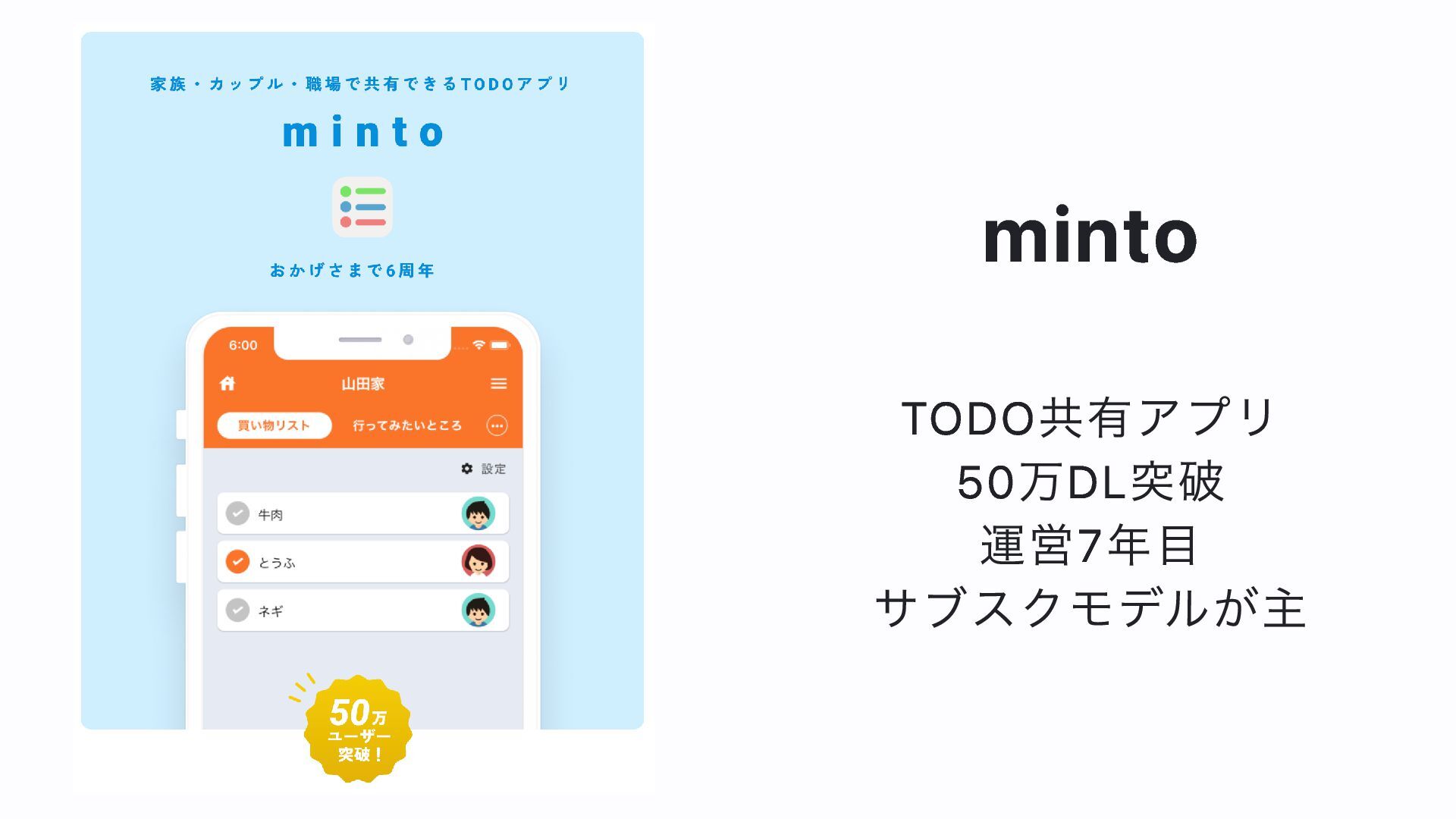 minto TODO共有アプリ 50万DL突破 運営7年目 サブスクモデルが主