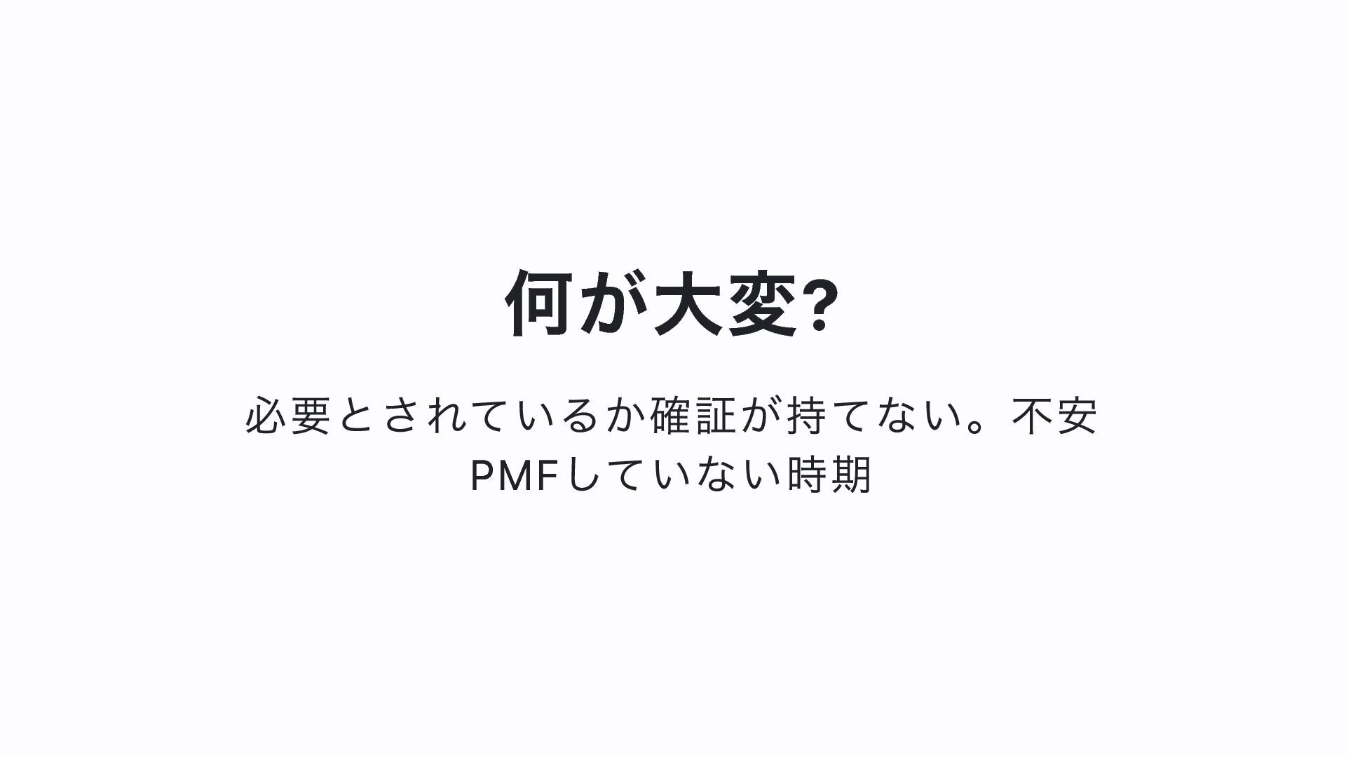 何が大変? 必要とされているか確証が持てない。不安 PMFしていない時期