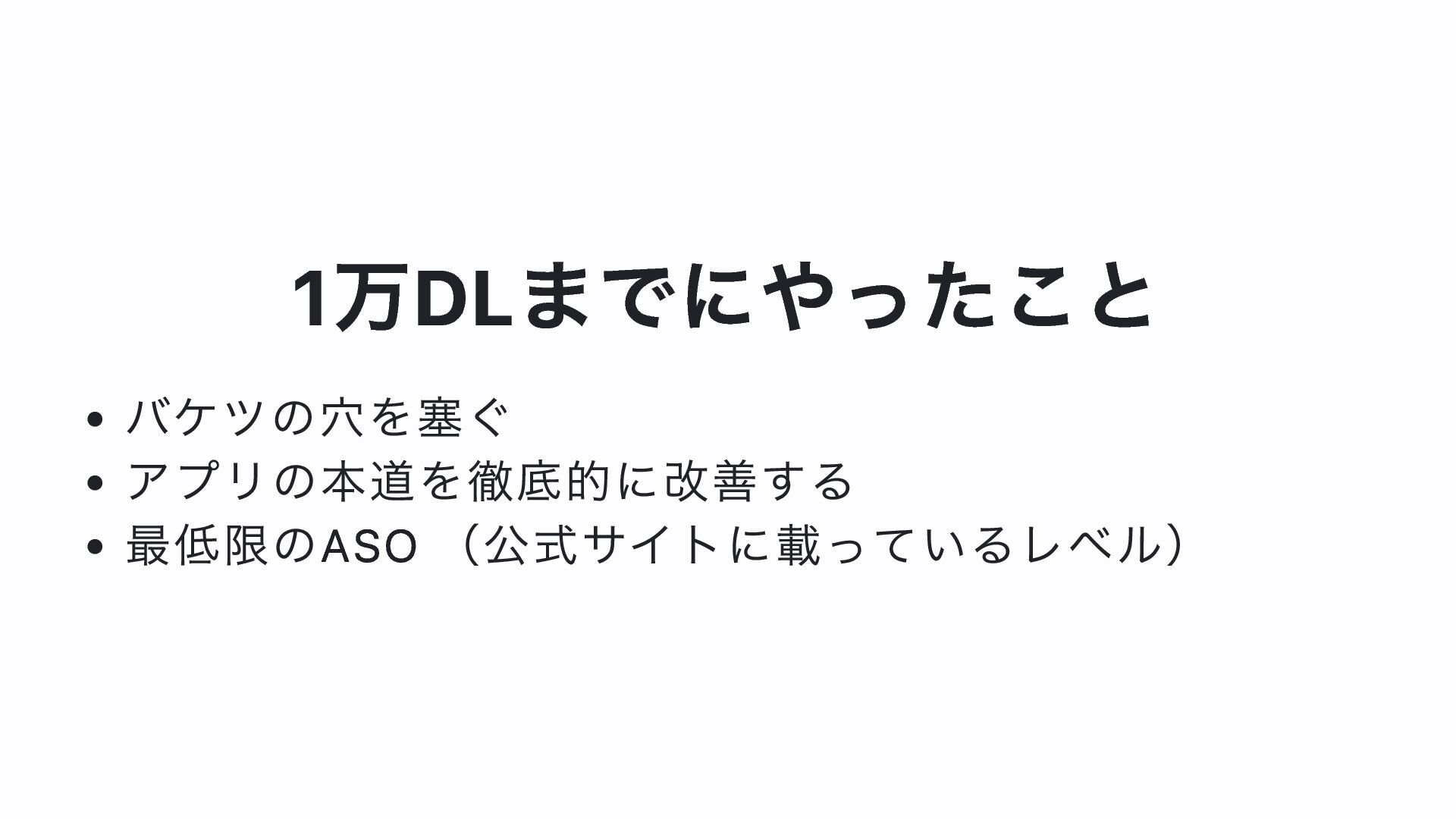 1万DLまでにやったこと バケツの穴を塞ぐ アプリの本道を徹底的に改善する 最低限のASO (公式サイトに載っているレベル)