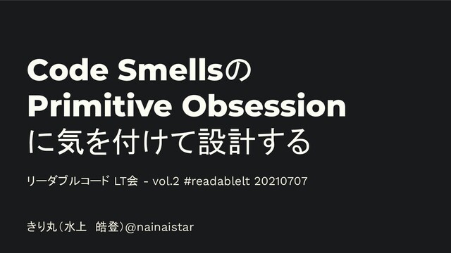 Code Smellsの Primitive Obsession に気を付けて設計する リーダブルコード LT会 - vol.2 #readablelt