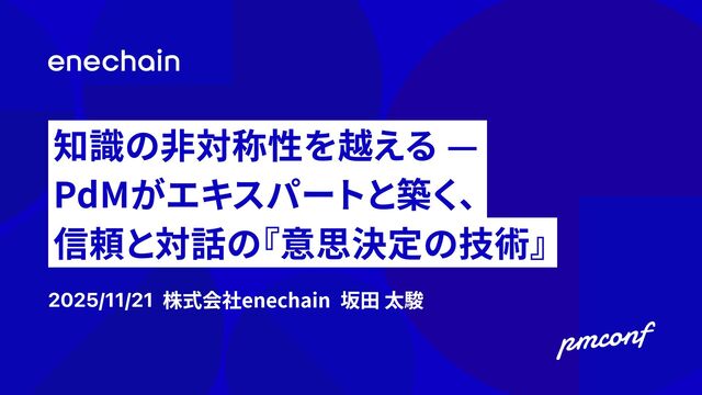 知識の非対称性を越える ― PdMがエキスパートと築く、 信頼と対話の 『意思決定の技術』 2025/11/21 株式会社enechain 坂田 太駿
