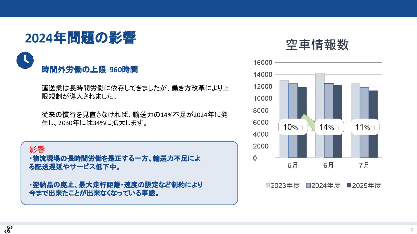 参考資料:国土交通省HP、当社取引実績より算出 、資料内「2024年問題の影響」参照 、会社概要より