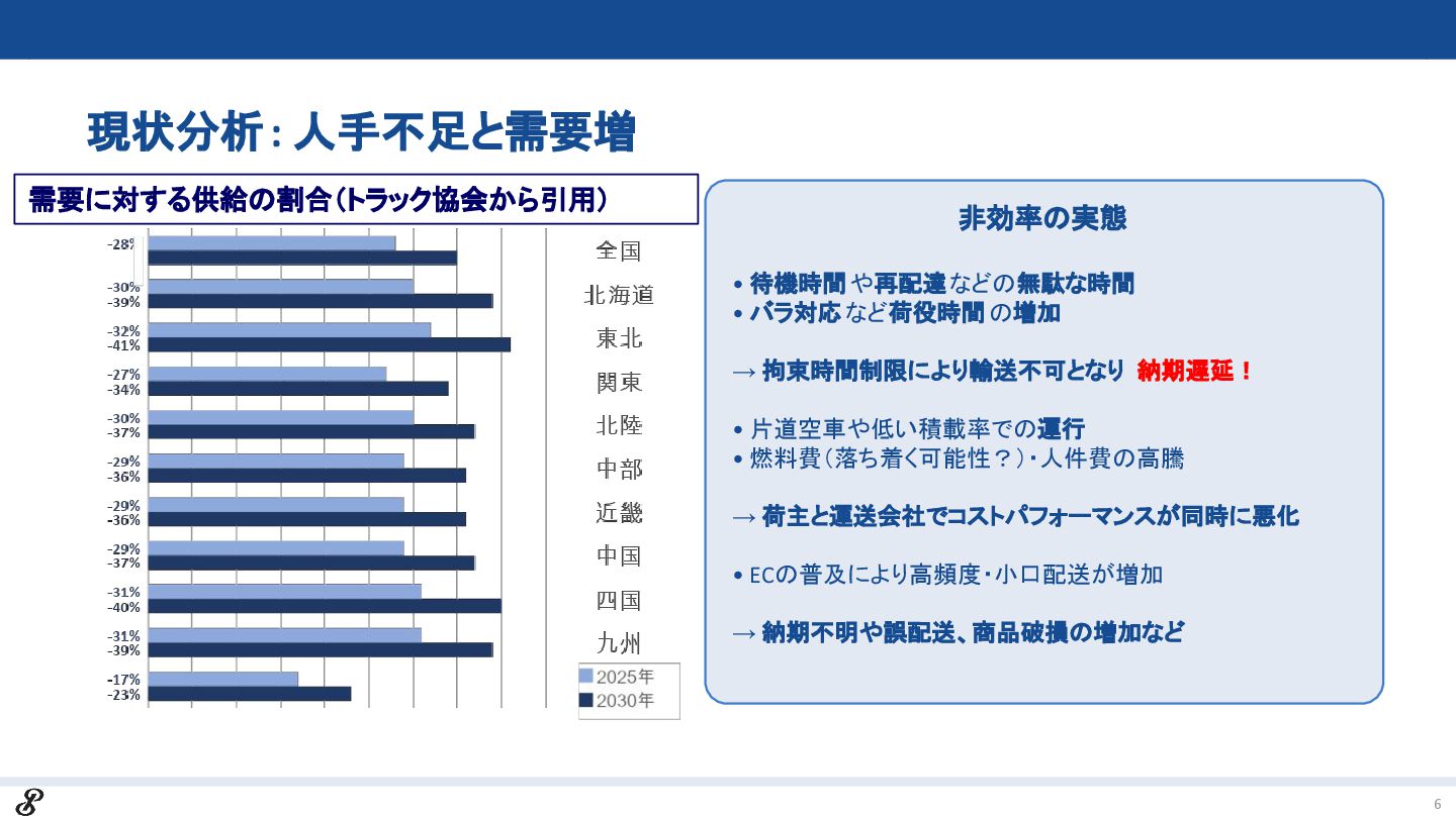 本資料では、物流危機(輸送力30%不足)への具体的対策として、以下の手法を公開しています。