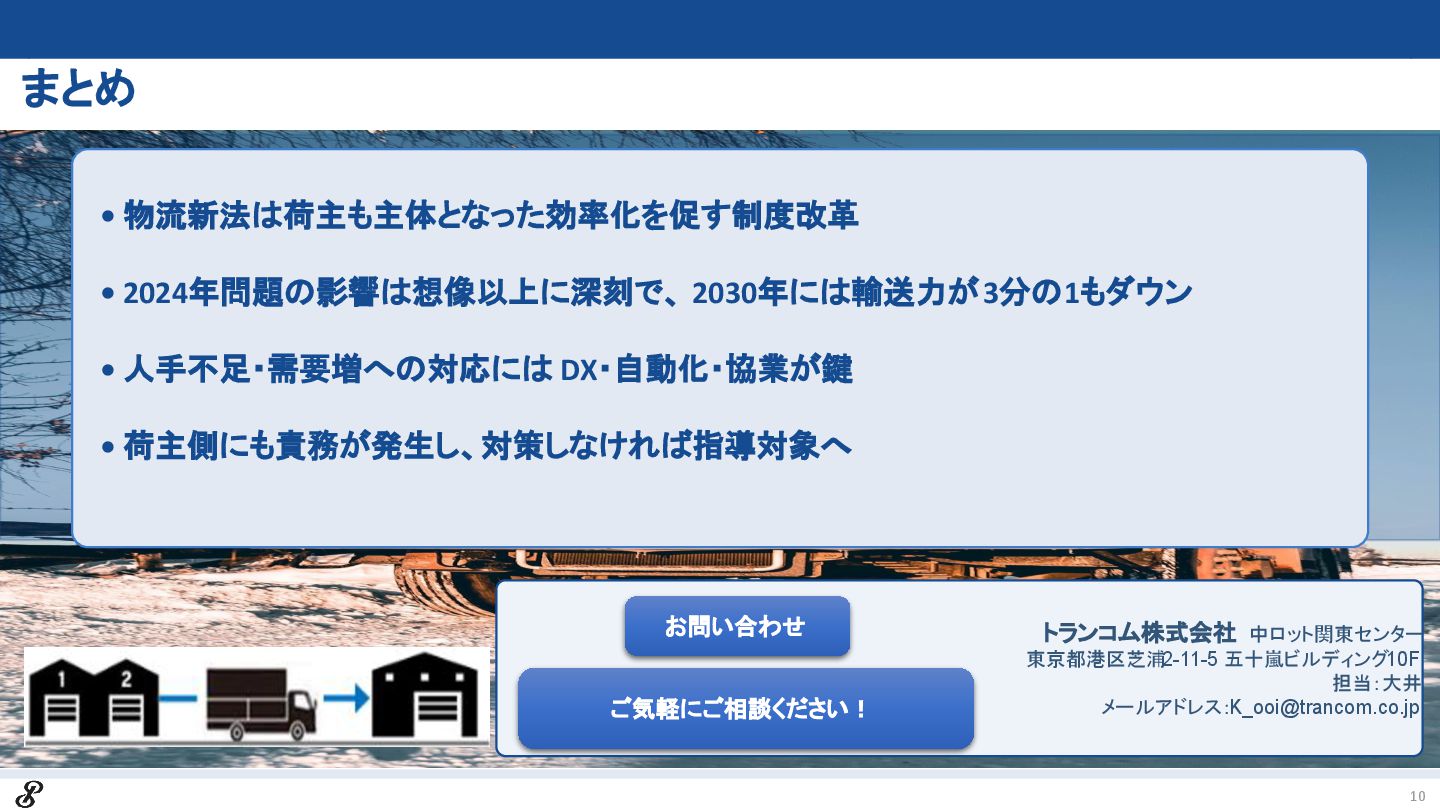求貨求車サービス国内シェアNo.1、トランコム株式会社 中ロット関東センター(担当:大井)による、物流課題解決のための解説資料です。