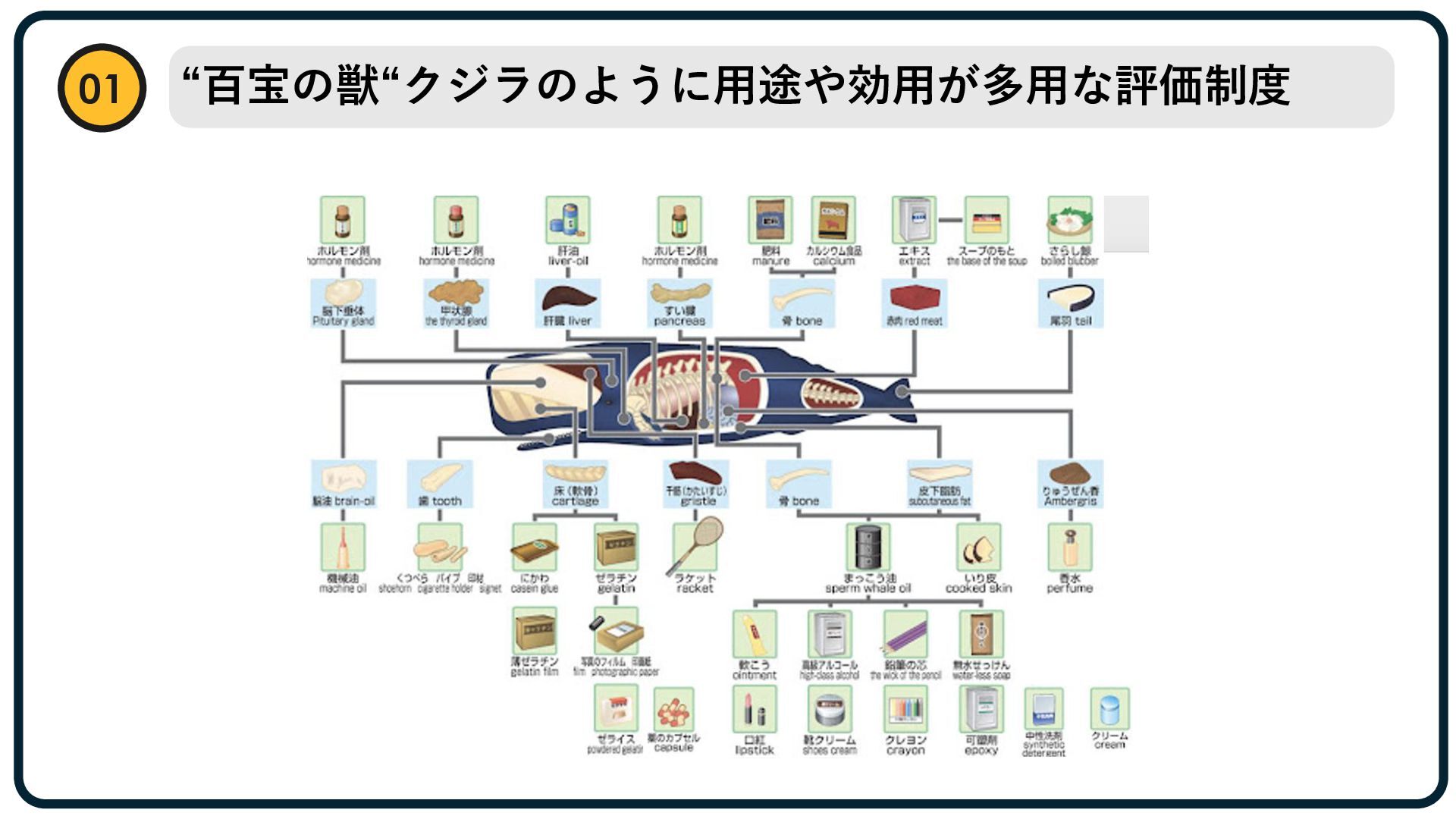 “百宝の獣“クジラのように用途や効用が多用な評価制度 01