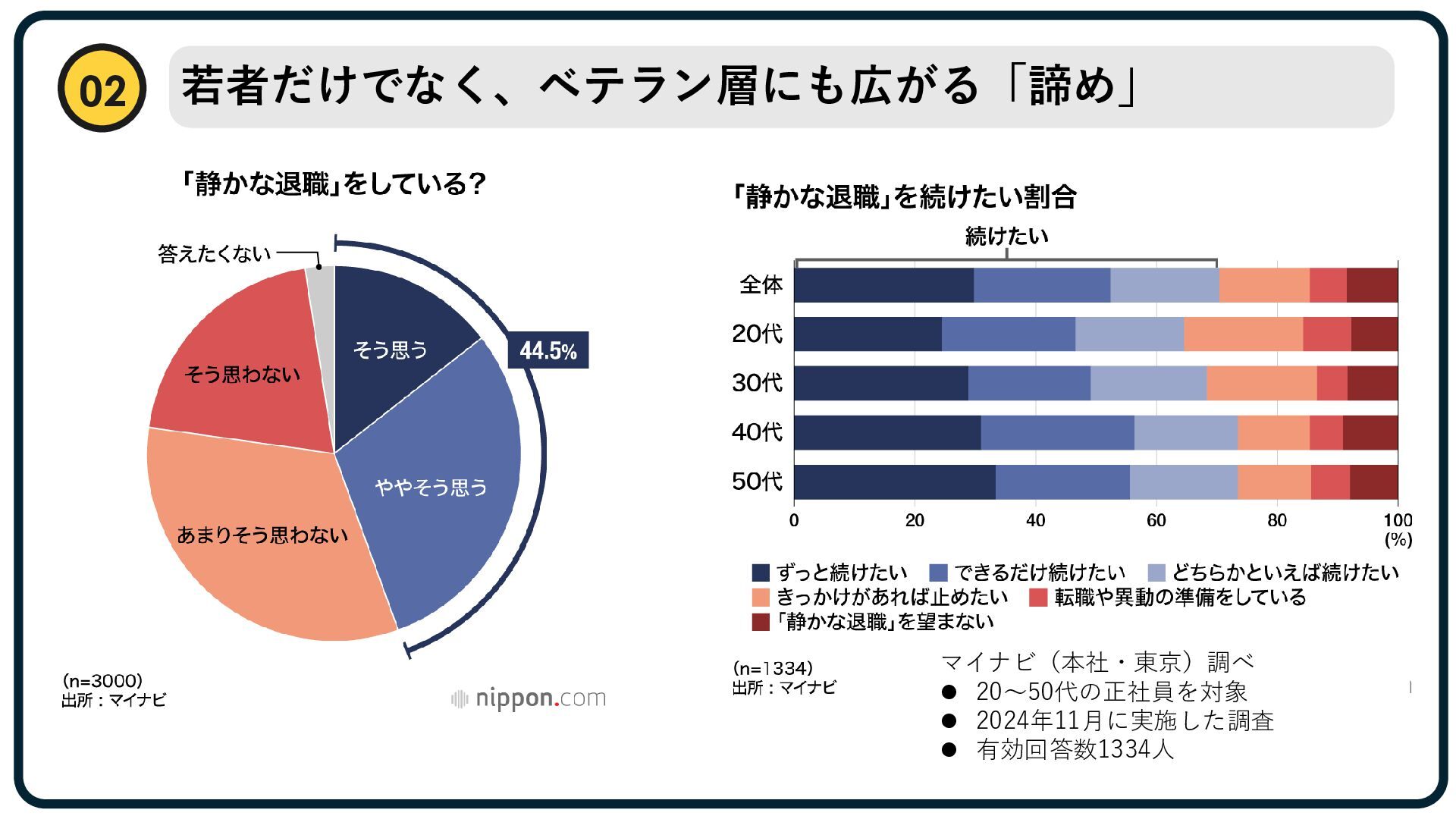 い る ? 若者だけでなく、ベテラン層にも広がる「諦め」 マイナビ(本社・東京)調べ ⚫ 20~50代の正社員を対象 ⚫ 2024年11月に実施した調査 ⚫ 有効回答数1334人 02