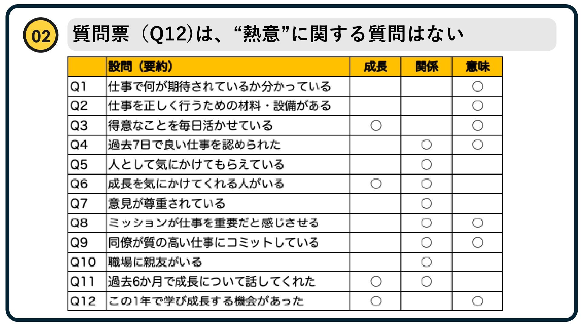 質問票(Q12)は、“熱意”に関する質問はない 02