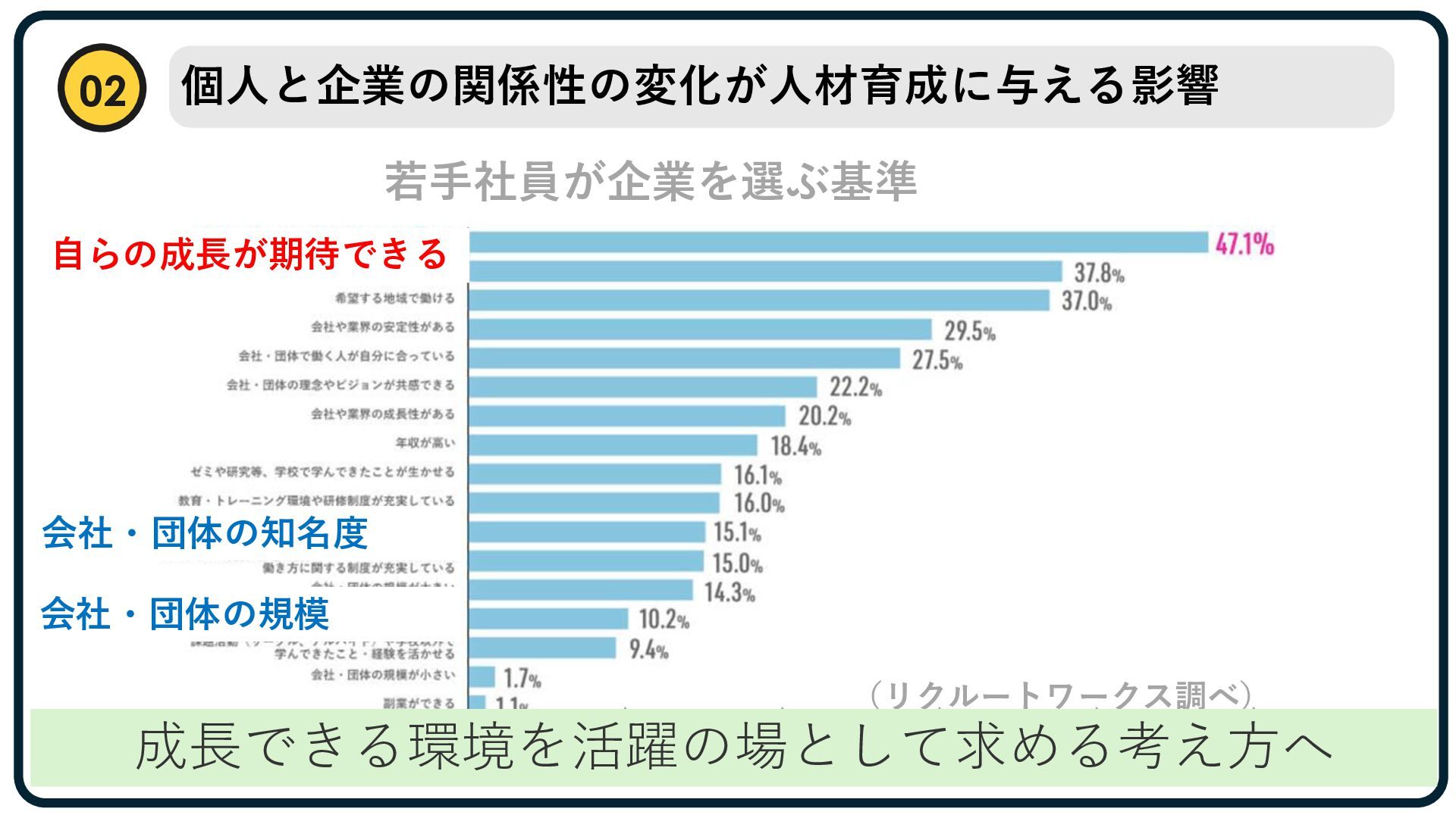 個人と企業の関係性の変化が人材育成に与える影響 企業の中での成長ではなく、社会での成長を意識 02