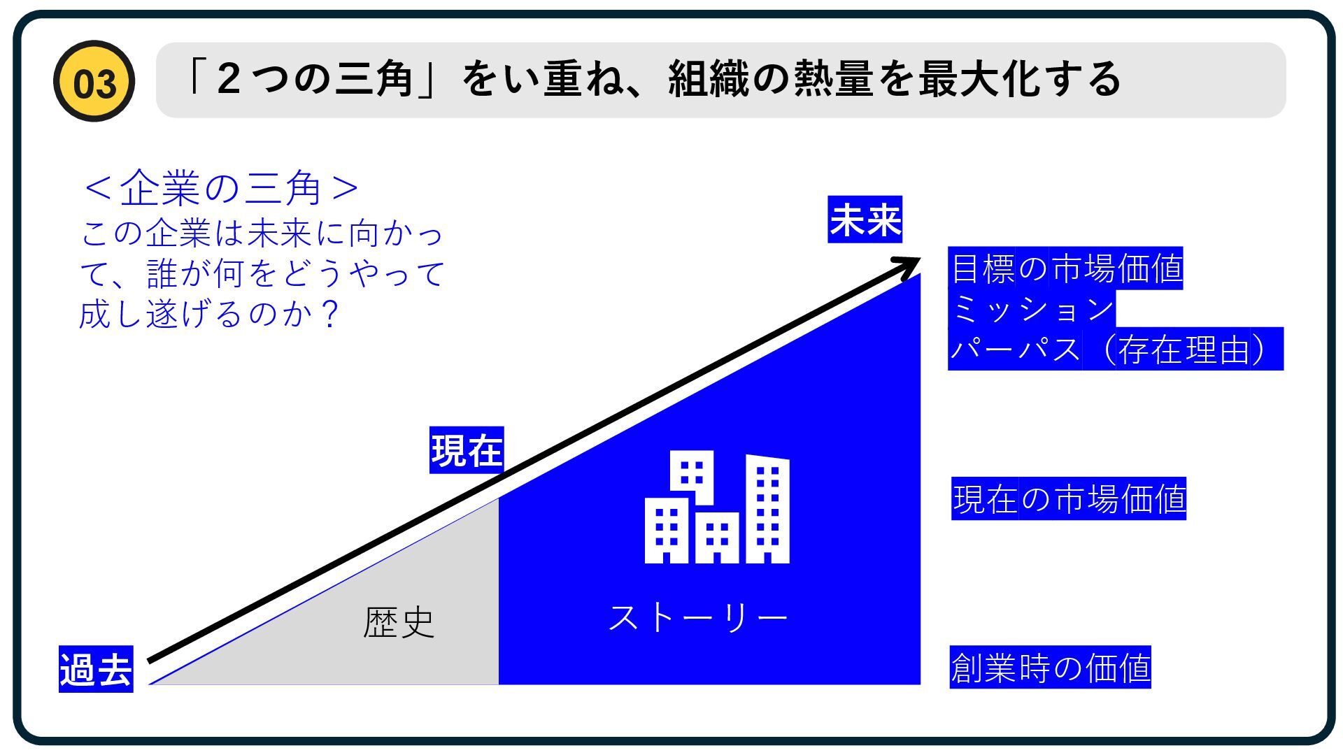 歴史 <企業の三角> この企業は未来に向かっ て、誰が何をどうやって 成し遂げるのか? ストーリー
