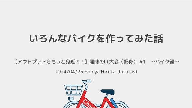 いろんなバイクを作ってみた話 【アウトプットをもっと身近に!】趣味のLT大会(仮称) #1 〜バイク編〜 2024/04/25 Shinya Hiruta (hirutas)