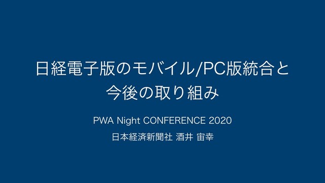 [セッションの説明文] 日経電子版は、2017年11月のモバイル版と一部PC版のリニューアル以降、PWAに関する様々な施策を打ってきました。 現在、その知見を活かしつつ新たな成長基盤の構築のためモバイル版とPC版の統合プロジェクトを進めています。 このセッションでは、統合プロジェクトにおいての技術選定や新たな取り組み、今後の展望などを話したいと思います。