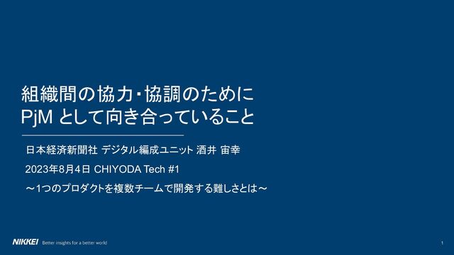 1 組織間の協力・協調のために PjM として向き合っていること 日本経済新聞社 デジタル編成ユニット 酒井 宙幸 2023年8月4日 CHIYODA