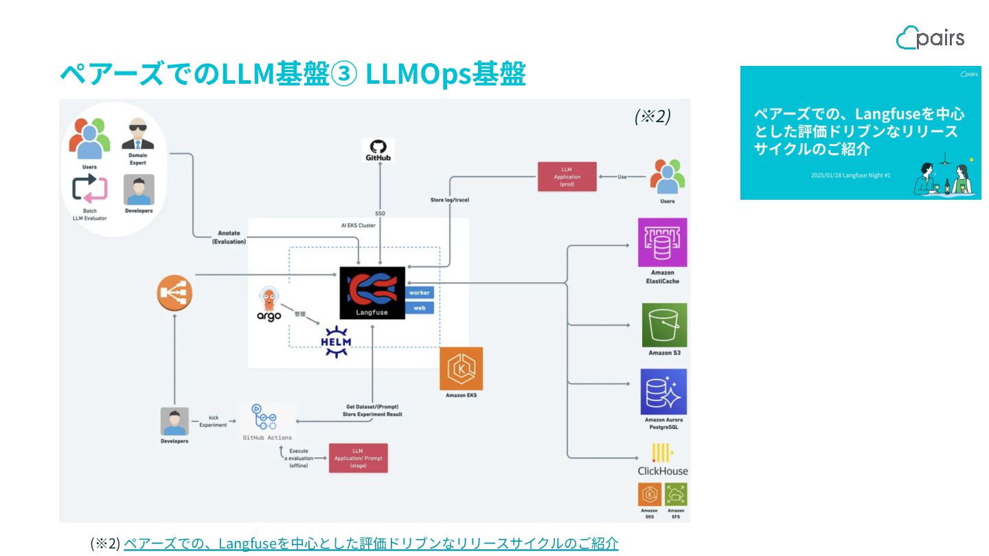 ペアーズでのLLM基盤③ LLMOps基盤 (※2) ペアーズでの、Langfuseを中⼼とした評価ドリブンなリリースサイクルのご紹介 (※2)