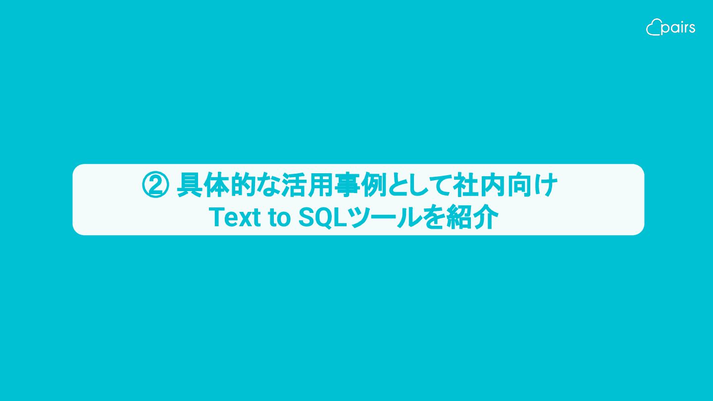 ② 具体的な活用事例として社内向け Text to SQLツールを紹介