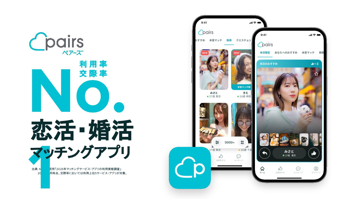 出典:MMD研究所「2025年マッチングサービス・アプリの利用実態調査」 2025年9月時点。交際率においては利用上位5サービス・アプリが対象。 No. 1 恋活・婚活 マッチングアプリ 利 用 率 交