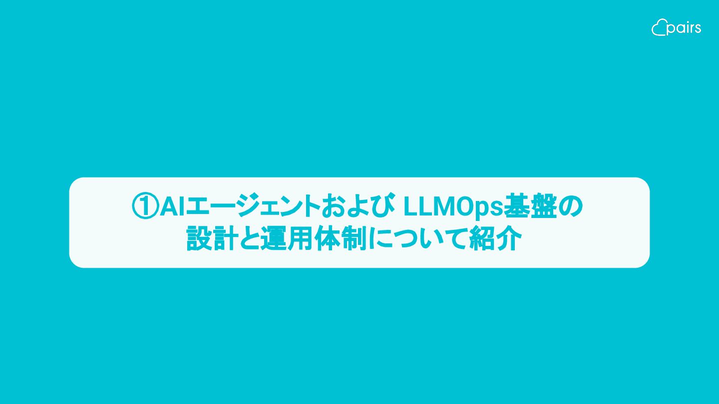 ①AIエージェントおよび LLMOps基盤の 設計と運用体制について紹介