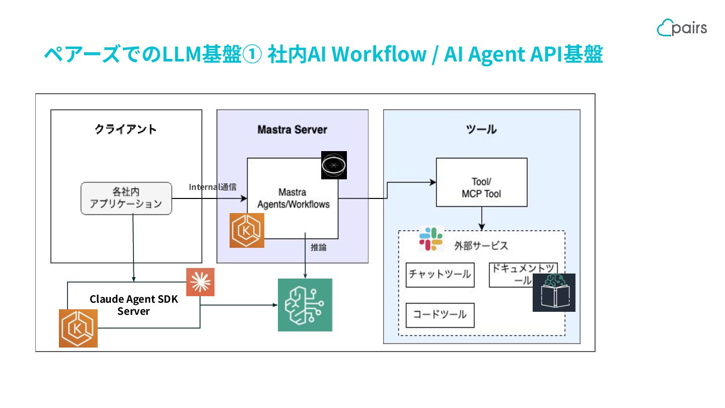 ペアーズでのLLM基盤① 社内AI Workflow / AI Agent API基盤 Internal通信 推論 Claude