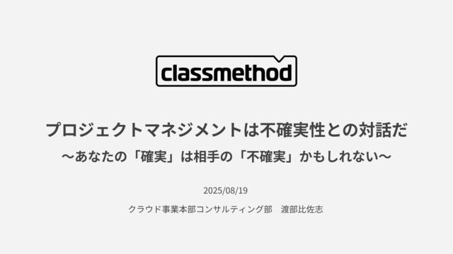 2025/08/19 クラウド事業本部コンサルティング部 渡部⽐佐志 プロジェクトマネジメントは不確実性との対話だ 〜あなたの「確実」は相⼿の「不確実」かもしれない〜