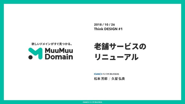 2018/10/26 Think DESIGN #1 「ムームードメイン リニューアル」 GMOペパボ株式会社 : 松本芳郎 @bennkyougirai 、久留弘貴 @tomemot https://think-design.connpass.com/event/102380/ https://muumuu-domain.com/