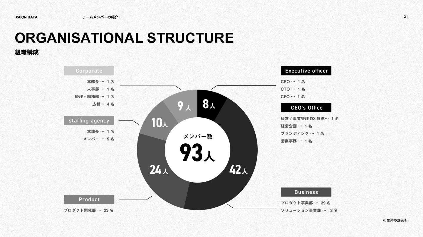 10. 22 XAION DATA ORGANIZATION CHART 組織構成 XAION DATA チームメンバーの紹介 プロダクト