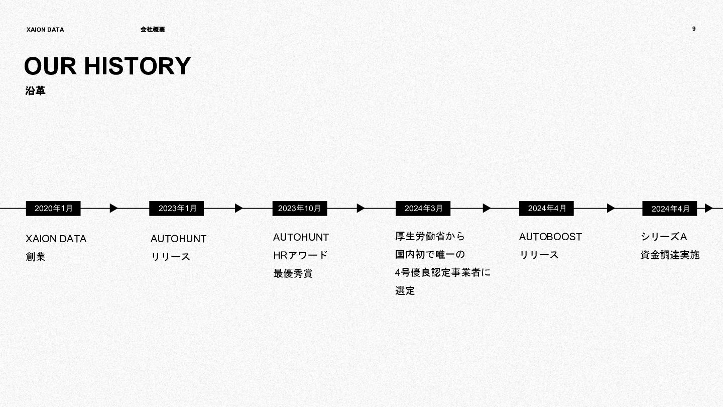 6. 9 OUR HISTORY 沿革 シリーズA 資金調達実施 XAION DATA 会社概要 AUTOHUNT