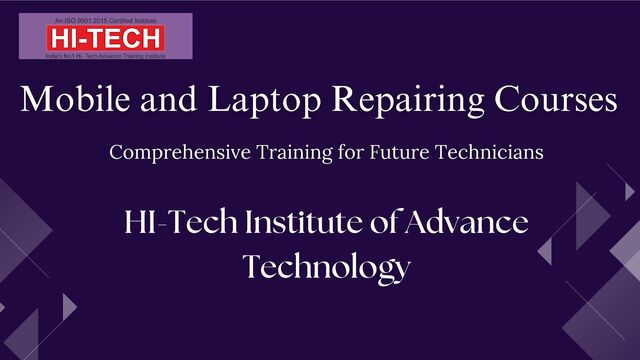 issues such as screen malfunctions, battery problems, and software glitches. 2. Hardware Repair - Gain skills in repairing physical components like screens, buttons, cameras, and connectors. 3. Software Troubleshooting - Understand software issues such as operating system errors, app crashes, and data recovery techniques. 4. Advanced Techniques - Explore advanced repair techniques for water damage, motherboard repairs, and microsoldering for intricate components. Basic Electronics and Tools 1. Electronic Components - Learn about resistors, capacitors, diodes, and transistors: their functions and applications in circuits. 2. Circuit Analysis - Understand basic circuit theory, including series and parallel circuits, voltage, current, and resistance. 3. Tools of the Trade - Familiarize yourself with essential tools like multimeters, soldering irons, screwdrivers, and tweezers used in electronic repair. 4. Safety Precautions - Emphasize safety protocols when handling electronic components and using tools to prevent accidents and damage to equipment. Mobile Phone Repair Laptop Repair 1. Hardware Diagnosis - Learn to diagnose and troubleshoot hardware issues such as keyboard malfunctions, battery failures, and overheating. 2. Component Replacement - Gain skills in replacing laptop components like RAM, hard drives, screens, and motherboards. 3. Software Troubleshooting - Understand and resolve common software problems including operating system errors, driver issues, and malware removal. 4. Advanced Repair Techniques - Explore advanced techniques such as data recovery, BIOS flashing, and soldering for complex hardware repairs.