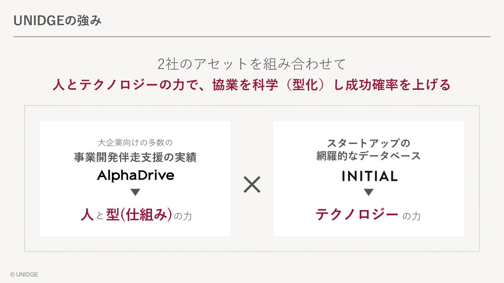 UNIDGEの強み © UNIDGE ⼤企業向けの多数の スタートアップの 網羅的なデータベース ⼈ 型(仕組み) と の⼒