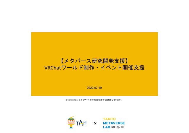 株式会社TAMのVR研究開発チーム「TAMTO METAVERSE LAB」が、VRChat上のワールド制作・イベント開催を中心とした法人のメタバース展開を支援します。
