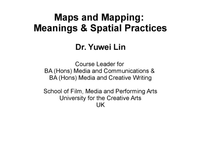 Course Leader for BA (Hons) Media and Communications & BA (Hons) Media and Creative Writing School of Film, Media and Performing Arts University for the Creative Arts UK