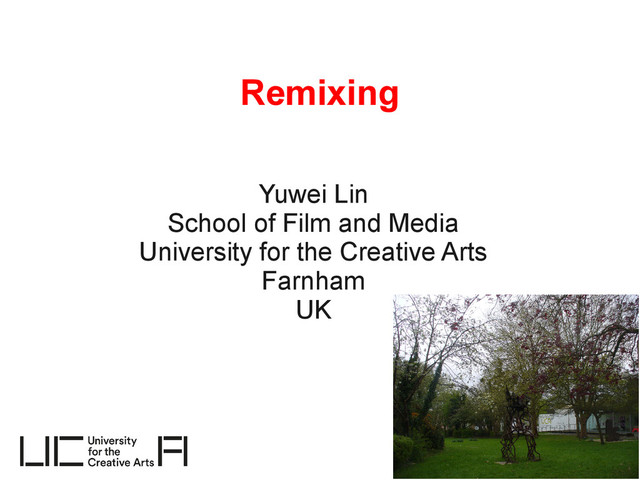 Social Production Transforms Markets and Freedom. Yale University Press. • Hill, Benjamin Mako Hill, Andrés Monroy-Hernández, and Kristina Olson. (2010) “Responses to remixing on a social media sharing website.” Pp. 74-81 in Proceedings of the 4th AAAI Conference on Weblogs and Social Media (ICWSM). Washington, D.C.: AAAI. • Hill, Benjamin Mako and Andrés Monroy-Hernández. (2013) "The remixing dilemma: the trade-off between generativity and originality." American Behavioral Scientist. 57-5, Pp. 643—663. • Jenkins, H. (2006). Convergence Culture: Where Old and New Media Collide. New York: New York University Press. • Jenkins, H., K. Clinton, R. Purushotma, A. Robinson, and M. Weigel (2006, October). Confronting the challenges of participatory culture: Media education for the 21st century. Technical report, MacArthur Foundation, Chicago, Illinois, USA. • Keen, A. (2007, June). The Cult of the Amateur: How Today’s Internet is Killing Our Culture (3rd Printing ed.). Crown Business. • Lessig, L. (2007). Larry lessig on laws that choke creativity. video on ted.com. • Lessig, L. (2008, October). Remix: Making Art and Commerce Thrive in the Hybrid Economy. Penguin Press HC. • Manovich, L. (2005). Remixability and remixability. http://www.manovich.net/DOCS/Remix_modular.doc. • Seneviratne, O.; Kagal, L.; Weitzner, D.; Abelson, H.; Berners-Lee, T.; and Shadbolt, N. (2009a). Detecting creative commons license violations on images on the world wide web. • Seneviratne, O.; Kagal, L.; and Berners-Lee, T. (2009b). Policy-Aware content reuse on the web. In The Semantic Web - ISWC 2009. 553–568.