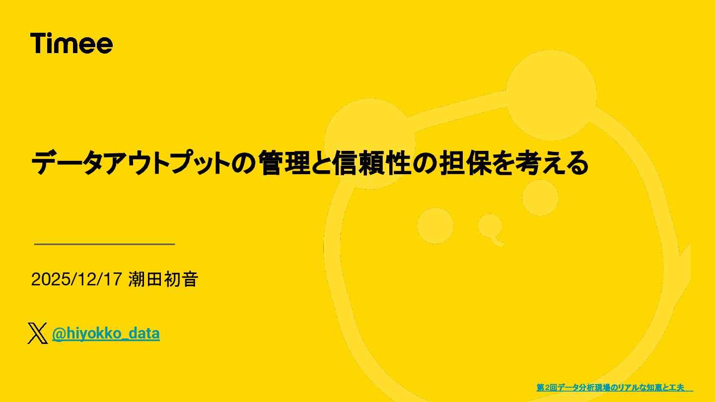 2025/12/17 潮田初音 データアウトプットの管理と信頼性の担保を考える 第2回データ分析現場のリアルな知恵と工夫 @hiyokko_data