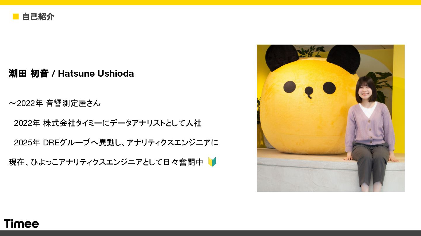 自己紹介 潮田 初音 / Hatsune Ushioda 〜2022年 音響測定屋さん 2022年 株式会社タイミーにデータアナリストとして入社