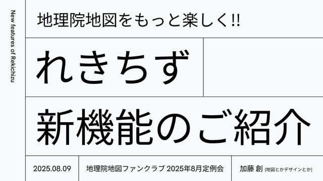 地理院地図をもっと楽しく!! れきちず 2025.08.09 地理院地図ファンクラブ 2025年8⽉定例会 加藤 創 (地図とかデザインとか) New features