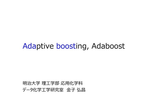 Adaboost とは? Adaboost(クラス分類)の手順 1/4 Adaboost(クラス分類)の手順 2/4 Adaboost(クラス分類)の手順 3/4 Adaboost(クラス分類)の手順 4/4 Adaboost(クラス分類)の予測 Adaboost(回帰分析)の手順 1/4 Adaboost(回帰分析)の手順 2/4 Adaboost(回帰分析)の手順 3/4 Adaboost(回帰分析)の手順 4/4 Adaboost(回帰分析)の予測