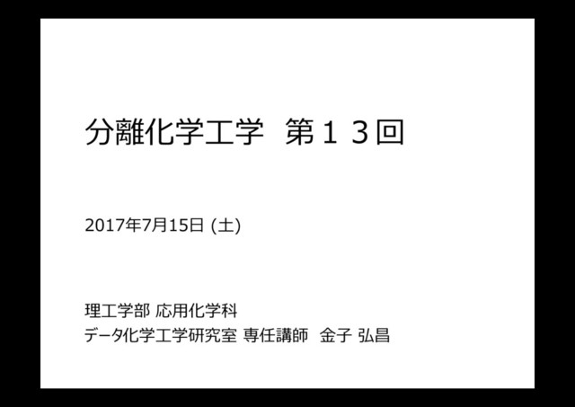 分離化学⼯学 第13回 2017年7月15日 (土) 0 理⼯学部 応用化学科 データ化学⼯学研究室 専任講師 ⾦⼦