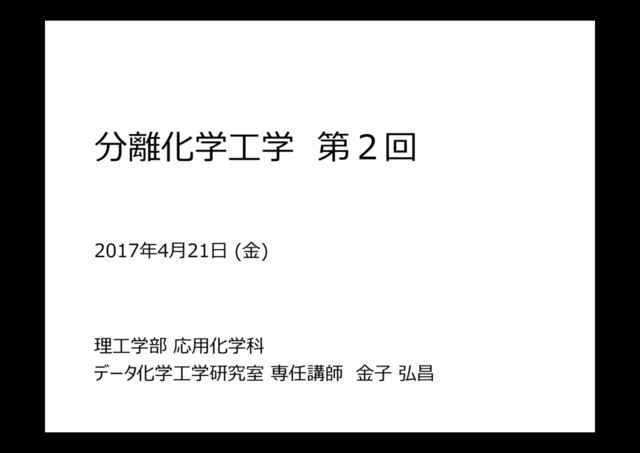 A B A B 気体のA, Bの分圧は、ダルトンの法則(Dalton’s low)より A A p y π = B B p y π = (気体のモル分率の⽐ = 分圧の⽐) より ( ) A B 1 y y + = A A A A p P x y π π = = A A A p P x = B B B p P x = B B B B p P x y π π = =