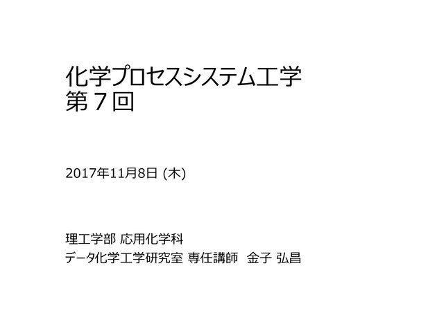 → B とする • 流入する A の濃度 CAi で流出する A の濃度 CA (Bの濃度) を制御 3 CAi , F CA , F V, T, rA F [m3・min-1]︓入⼝・出⼝流量 CAi [kmol・m-3]︓入⼝のAの濃度 CA [kmol・m-3]︓CSTR内のAの濃度 V [m3]︓CSTR内の液体体積 T [K]︓CSTR内の液体温度 i ︓input o︓output rA [kmol・m-3 m2]︓Aの反応速度