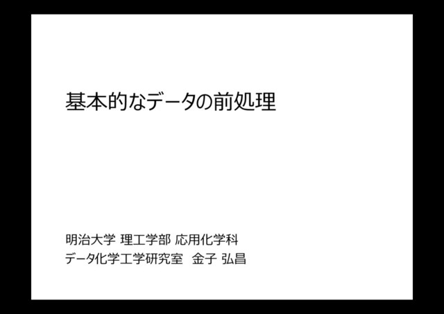 ) test, k i x : テストデータのk 個目のサンプルにおける、i 番目の変数(記述⼦) の値 ( ) test, ( ) test, " k i i k i i x x µ σ − = i µ : トレーニングデータの i 番目の変数(記述⼦) の平均 i σ : トレーニングデータの i 番目の変数(記述⼦) の標準偏差