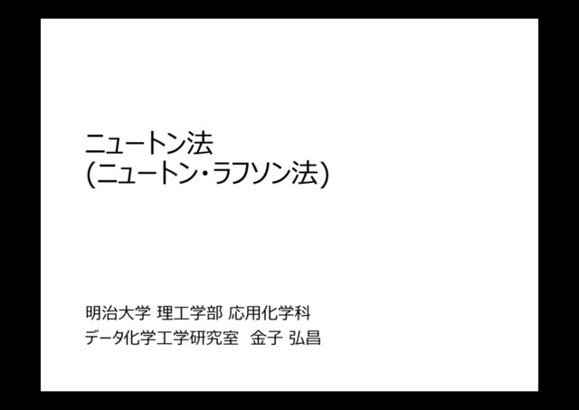 f (xk ) ) を通る直線は︖ ( ) ( ) ( ) k k k y f x x x f x ′ = − + この直線の x 切⽚ ( y = 0 のときの x ) xk+1 は︖ ( ) 1 1 0 ( ) ( ) ( ) ( ) k k k k k k k k f x x x f x f x x x f x + + ′ = − + = − ′