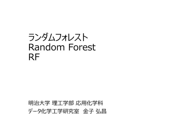 ( ) 1 1 k j i i i I F E p j k = = − k : サブデータセットの数 (決定木の数) p(j) : i 番目の決定木に変数 j が使われていたら 1, そうでなければ 0 Ei : i 番目の決定木において、OOBを推定したときの 平均二乗誤差 (回帰分析) 誤分類率 (クラス分類) Fi : i 番目の決定木を作成した後に、説明変数をランダムに並び替えて、 OOBを推定したときの 平均二乗誤差 (回帰分析) 誤分類率 (クラス分類) Ei が小さいほど、Fi が大きいほど、Ij が大きい → j 番目の説明変数 (記述⼦) の重要度が⾼い
