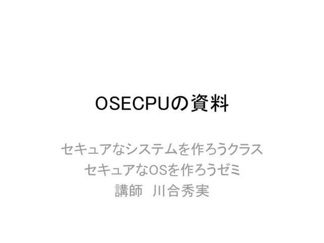 OSECPUの資料 セキュアなシステムを作ろうクラス セキュアなOSを作ろうゼミ 講師 川合秀実