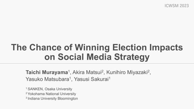 group tends to refer l Biterm topic model to all tweets in each group Topics with a largen and small of tweets • During pre-election, Schedule, Diplomacy, Please, and Campaign are popular topic • During election, they focus on the promotion of themselves. Otherwise, they do not focus on political discussions, such as Childcare, Income and Constitution.