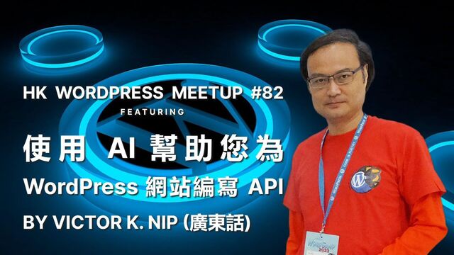 API by Victor K. Nip 7:35 善用 WordPress 去 拓展人際社交 by Patrick K.K. Lee 7:50 General Q&A/Discussion 8:00 Closing 8:05 Dinner in nearby Hong Kong style restaurant (Optional, pay for your own food)